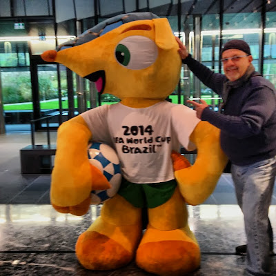 O Casal Nina e Guilherme Genovesi que desenvolvem um trabalho inédito na Europa em acompanhamento de pessoas que viajam ao exterior, principalmente na Itália estiveram na FIFA Zurich-Suiça com o mascote da Copa no Brasil 2014.