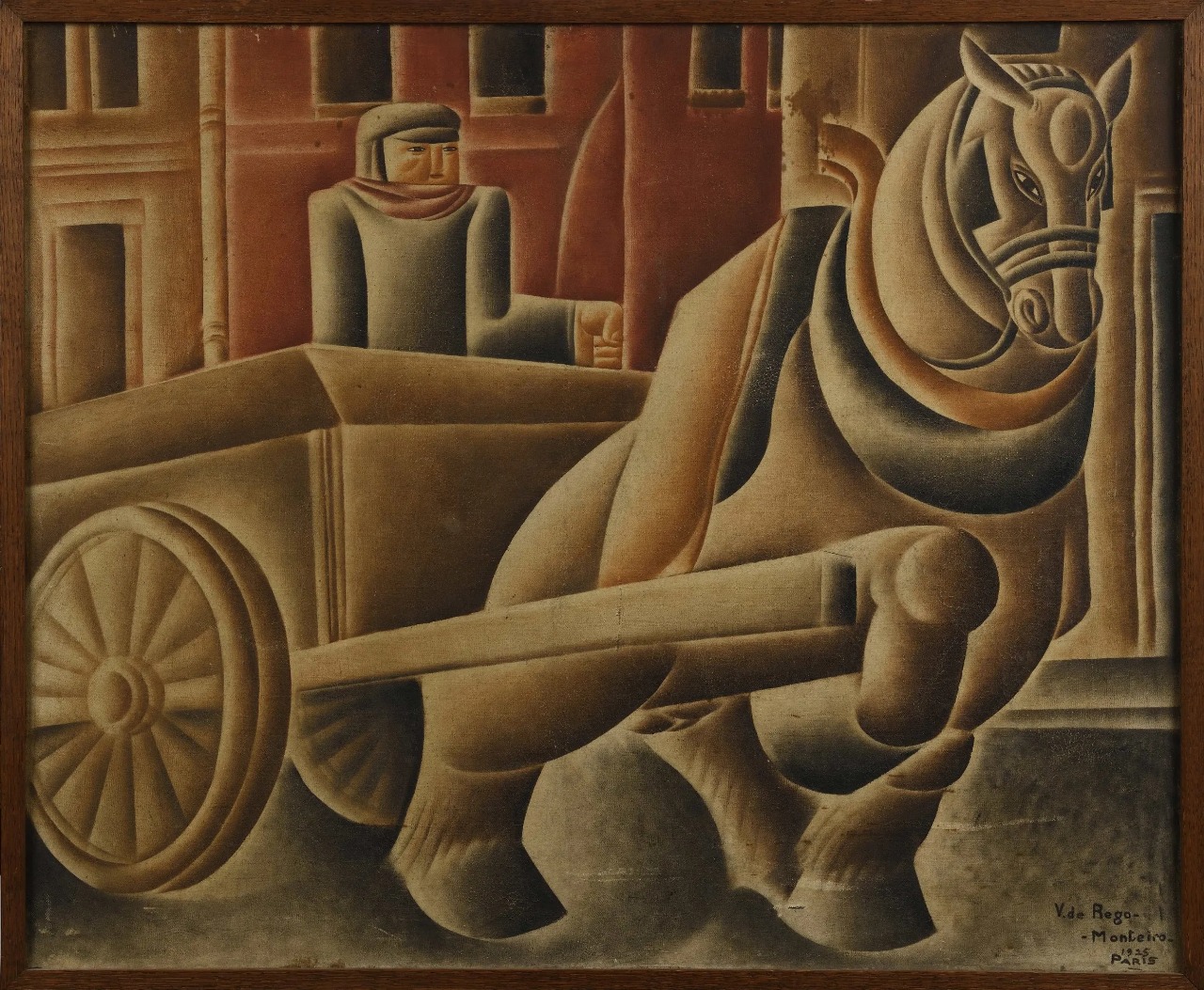 De composição sintética e monumental, a obra exemplifica um momento central da produção do artista, quando, radicado em Paris, desenvolvia uma linguagem singular que articulava influências do cubismo, da arte decorativa e de referências arcaicas, com forte identidade própria. A cena — marcada pela figura estilizada de um cocheiro e seu cavalo — revela o rigor construtivo e o interesse do artista por volumes simplificados e ritmos geométricos.